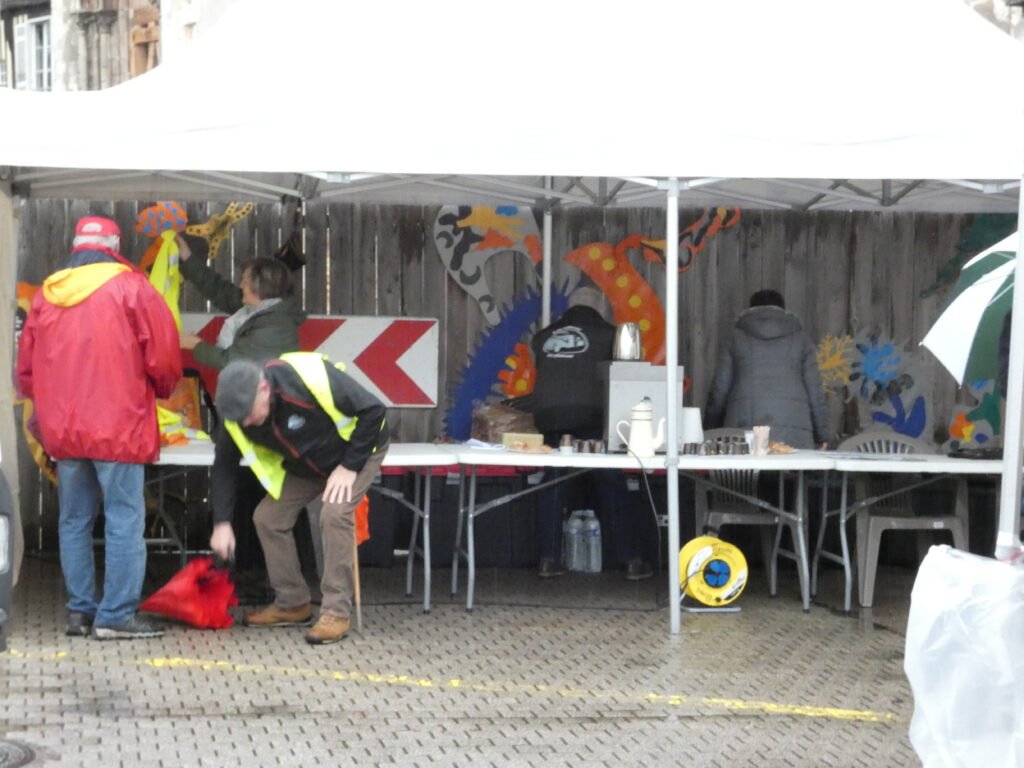 Les bénévoles étaient présent, attendant les véhicules (une cinquantaine de courageux sont venus…)