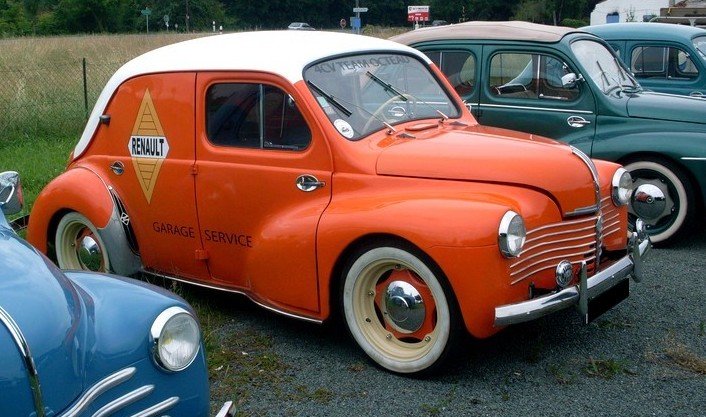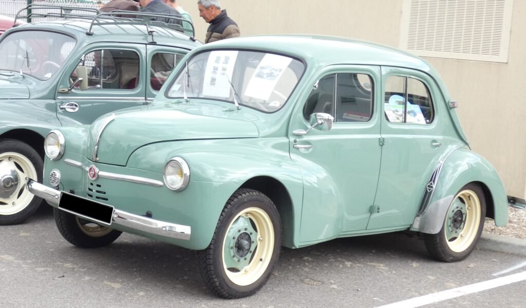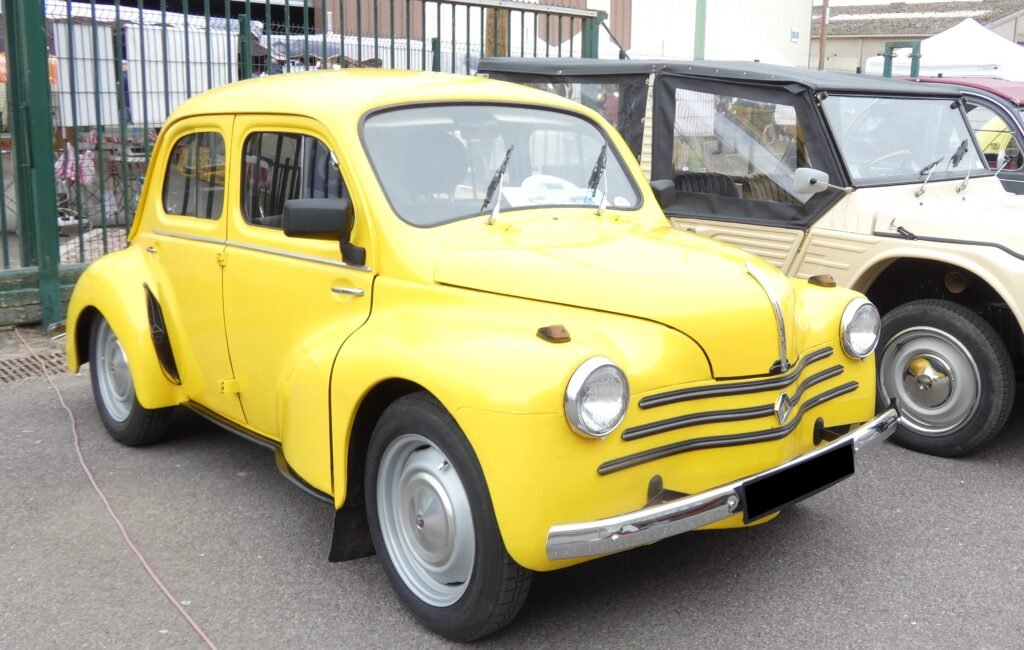 C’est une petite voiture, mais elle est particulièrement spacieuse pour son époque et ses dimensions extérieures. Surnommée la « 4 pattes » mais aussi « la motte de beurre » à cause de sa forme et de la couleur jaune de ses premiers exemplaires, elle symbolise le retour de la paix et de la prospérité car elle est la première voiture française accessible au plus grand nombre comme l’indique le slogan publicitaire diffusé à l’époque : « 4 chevaux, 4 portes, 444 000 francs ».